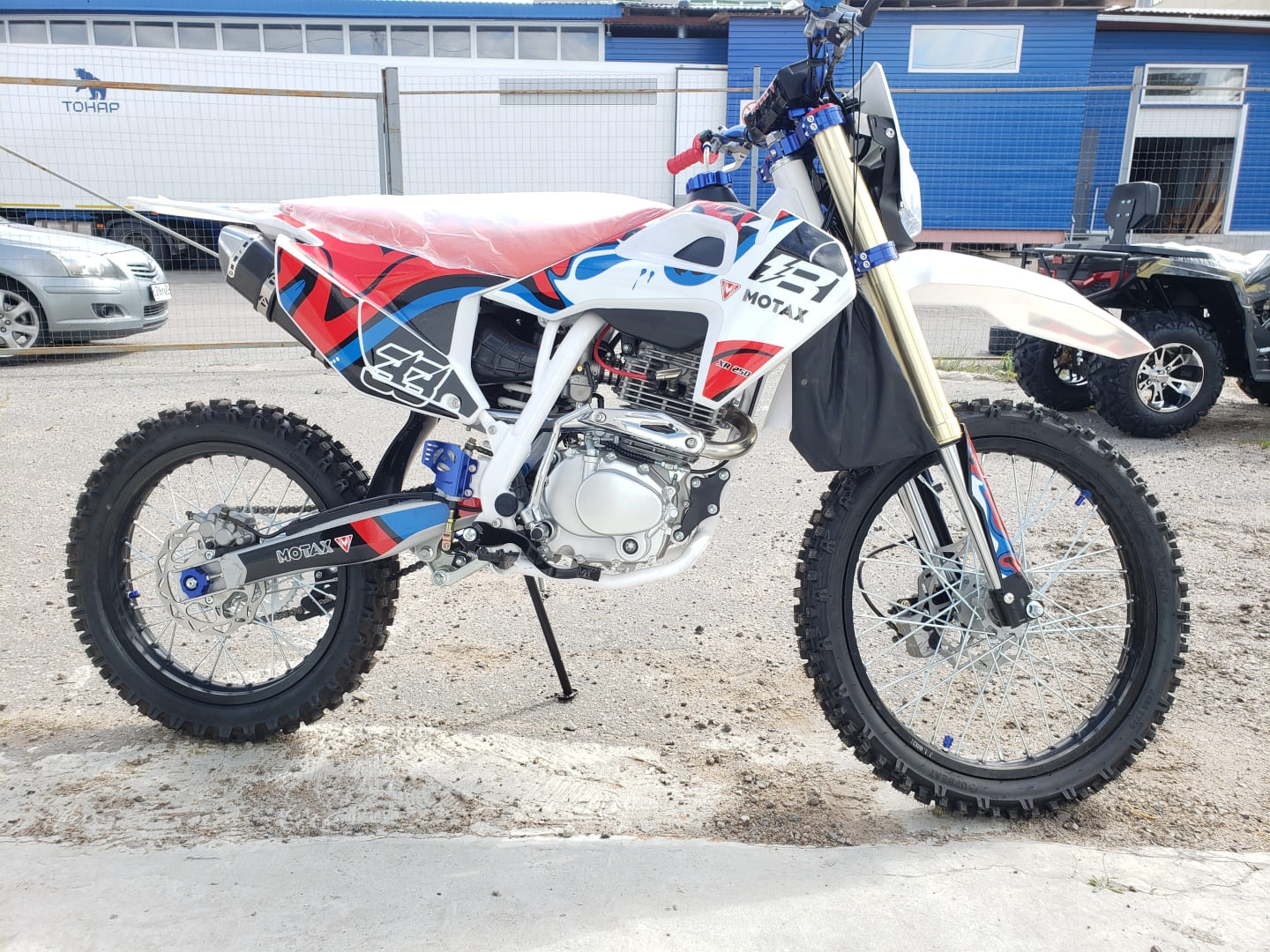 Размер покрышек: передние 80/100-21 и задние 100/90-18.