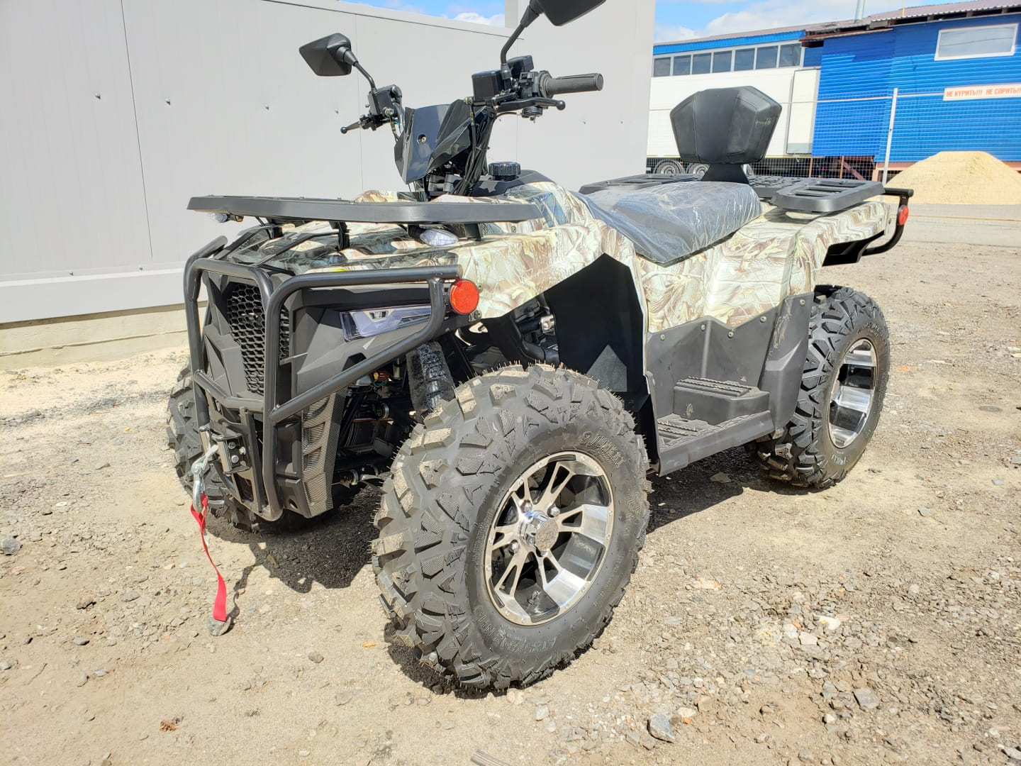 Квадроцикл оборудован четырехтактным двигателем, трансмиссией вариаторного типа с передачей заднего хода, большими 10-дюймовыми колесами, внедорожными шинами с развитыми грунтозацепами.