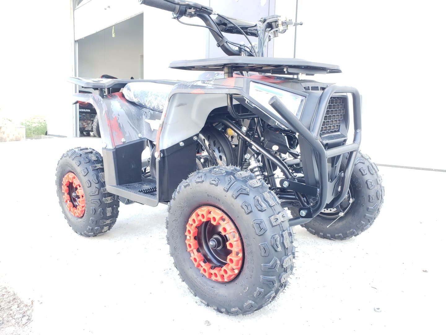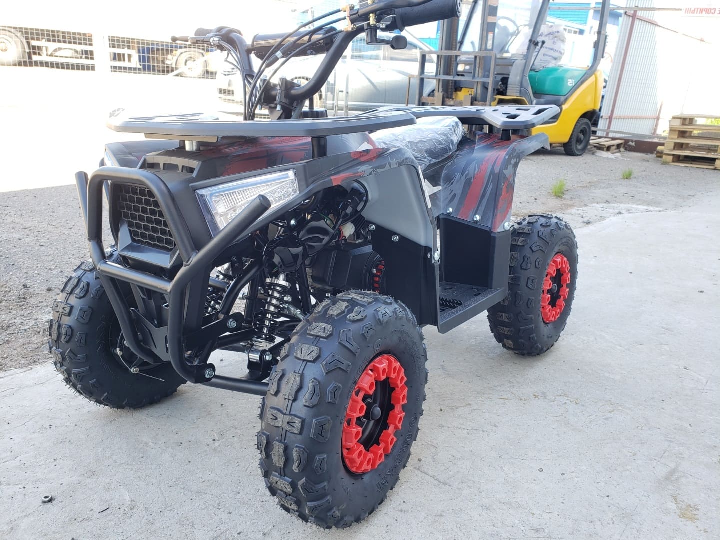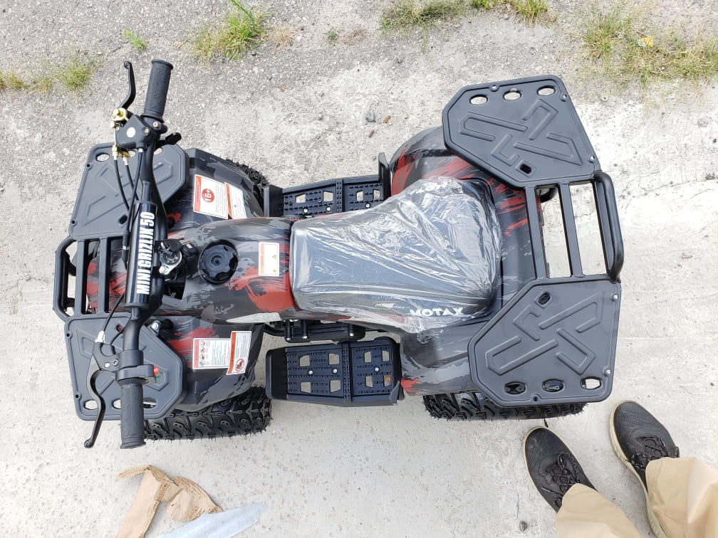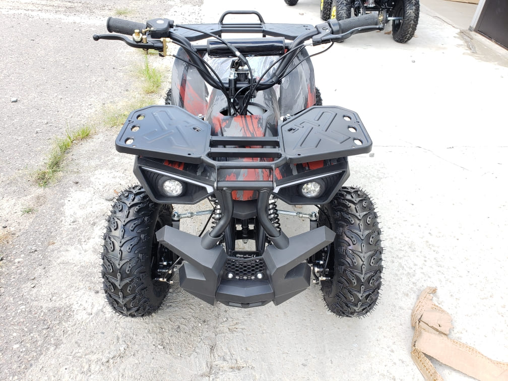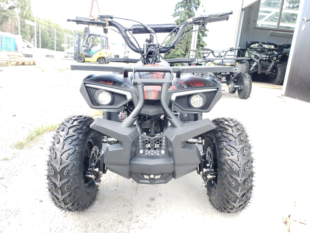Квадроцикл имеет хорошую комплектацию: он оборудован электрическим стартером, пультом дистанционного глушения и запуска двигателя, механическим ограничителем скорости, кнопкой быстрой остановки двигателя, яркими передними светодиодными фарами с режимом ближнего и дальнего света, раздвоенной системой выхлопа, механическим ручным стартером с механизмом легкого запуска. За счёт этого механизма существенно снижено усилие при запуске двигателя, с этой задачей может справиться и ребенок.