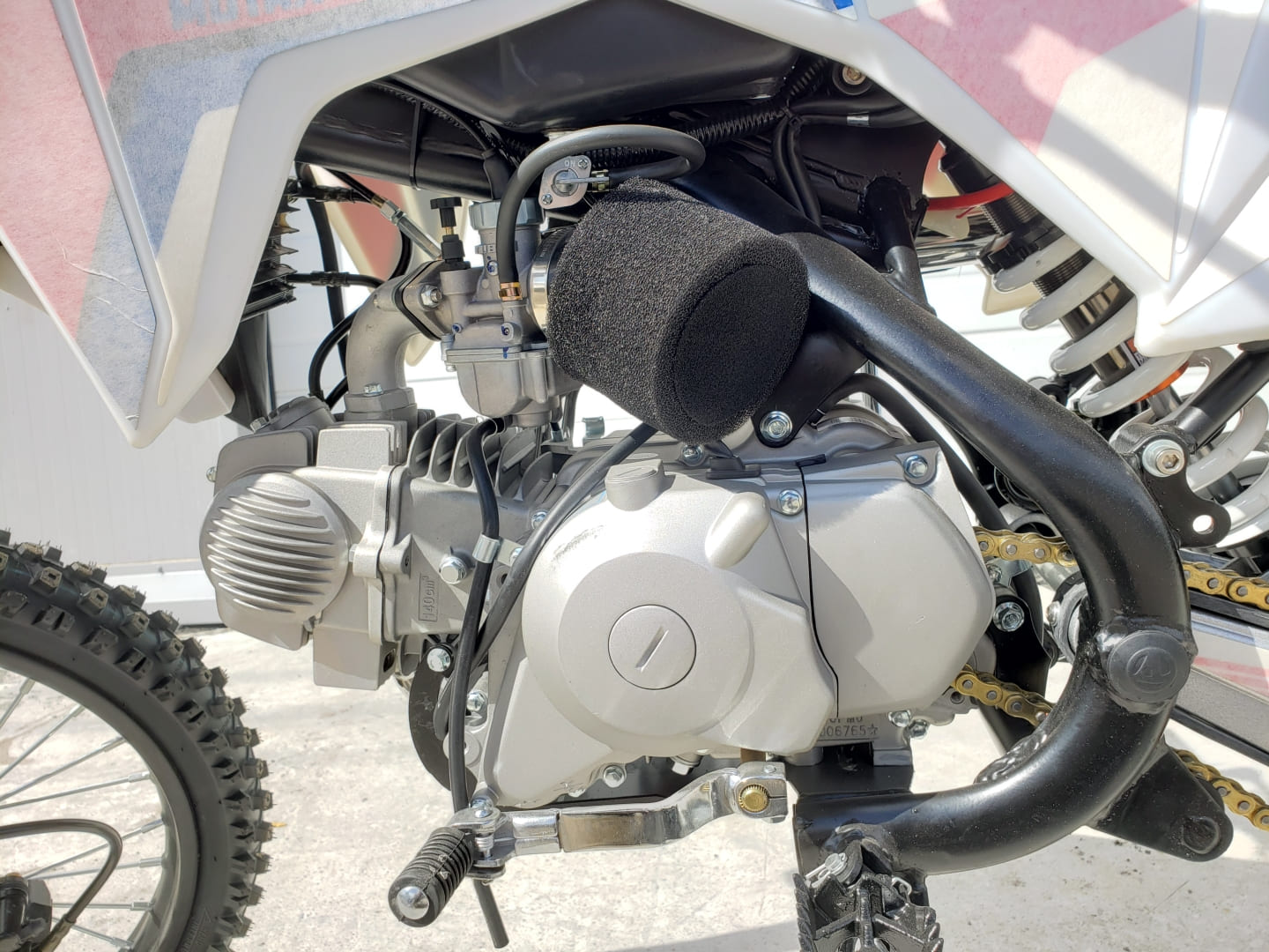 Мотоцикл MOTAX MX 140cc оснащен четырехтактным бензиновым двигателем 1P56FMJ с верхним распределительным валом и масляным охлаждением, имеющим два клапана на цилиндр, что обеспечивает стабильную работу и длительный срок службы.