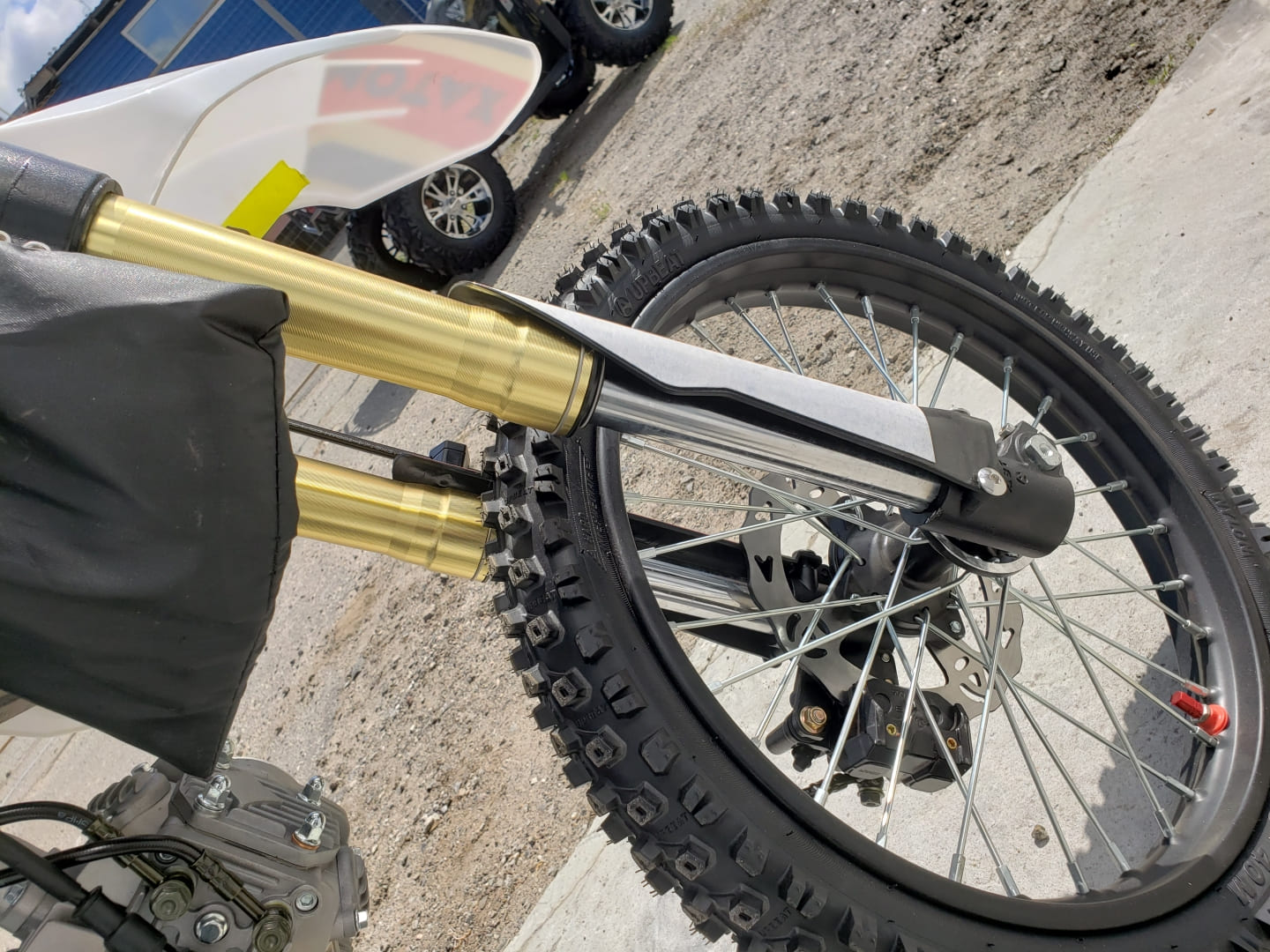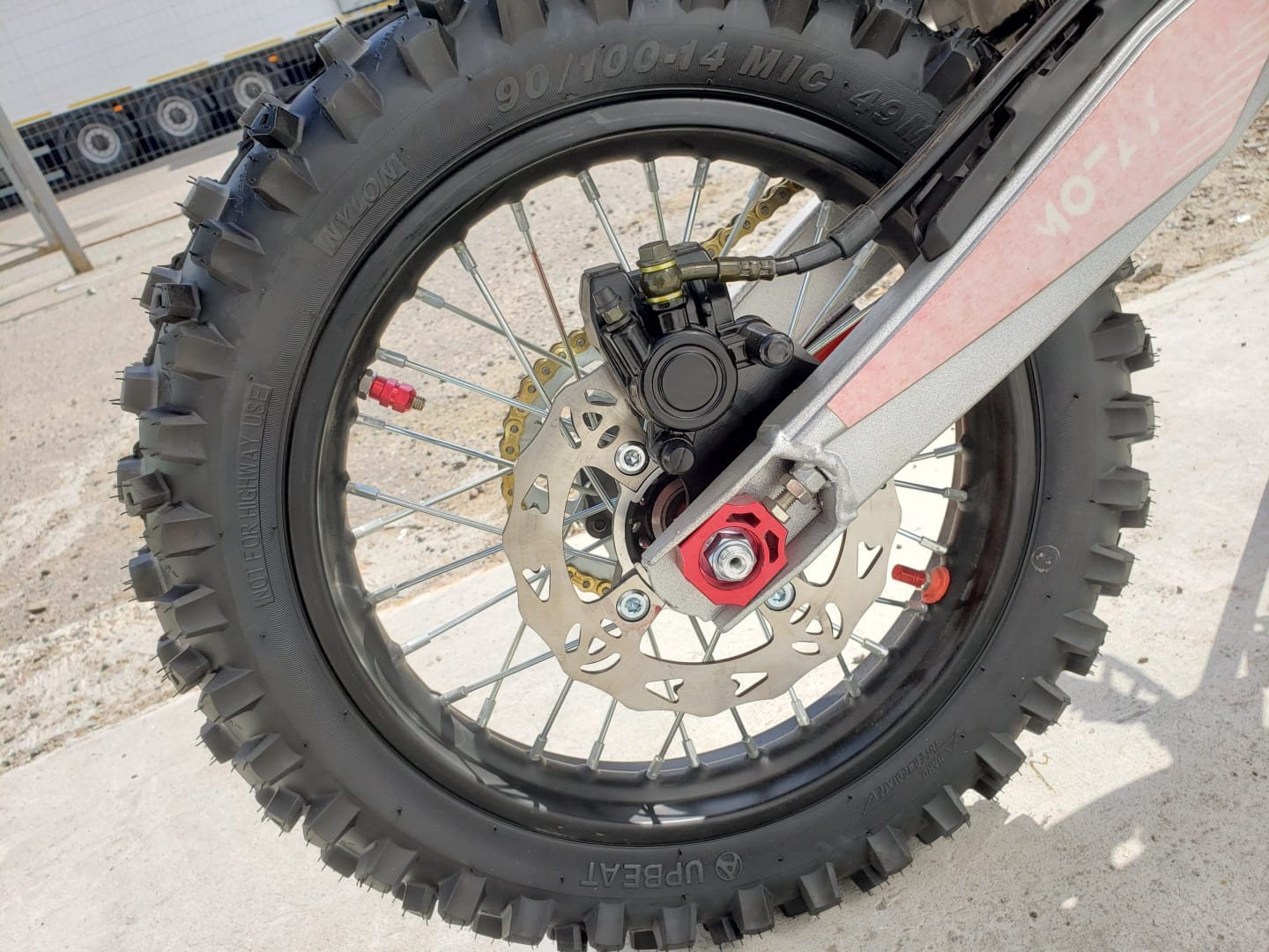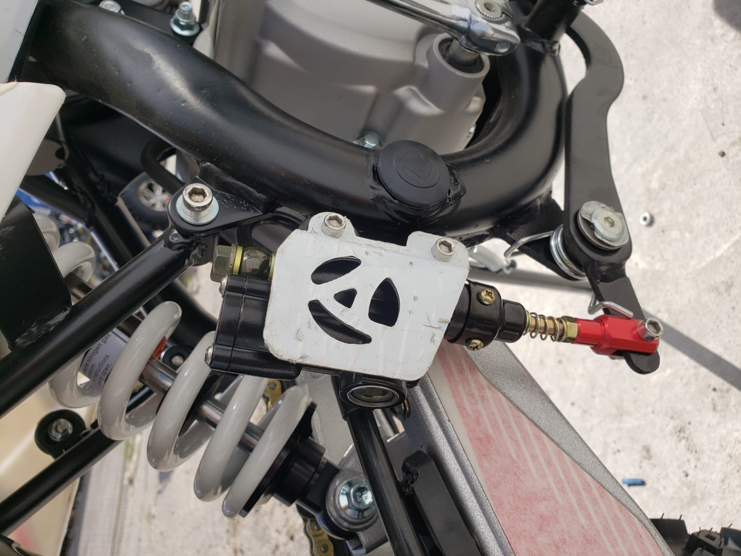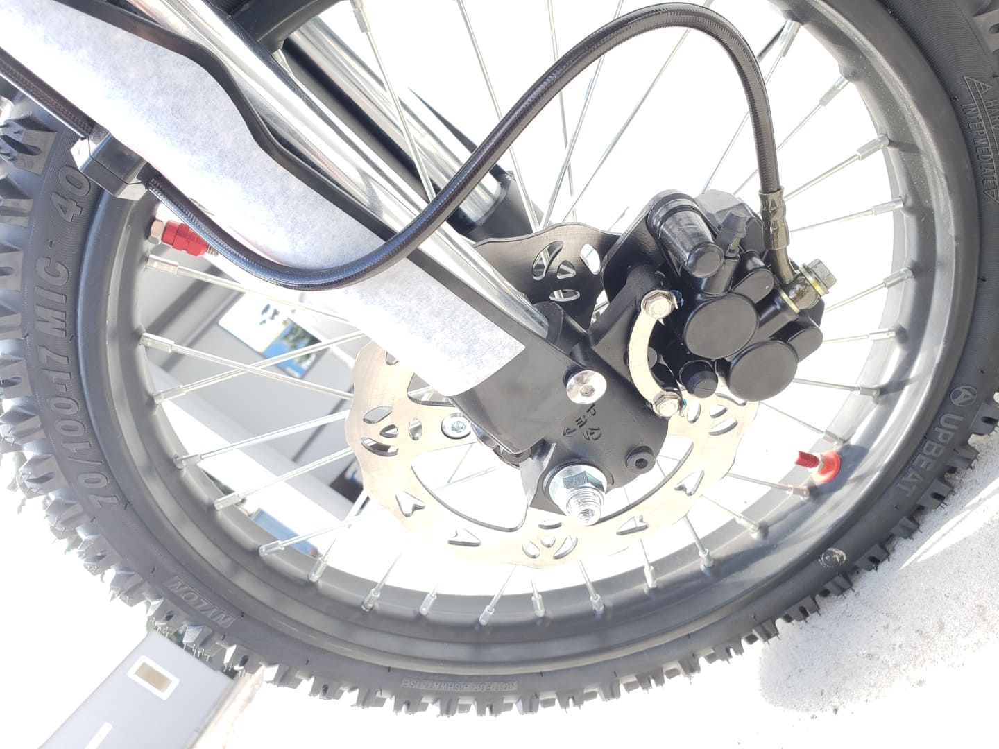 Питбайк оборудован гидравлическими дисковыми тормозами как на переднем, так и на заднем колесе.