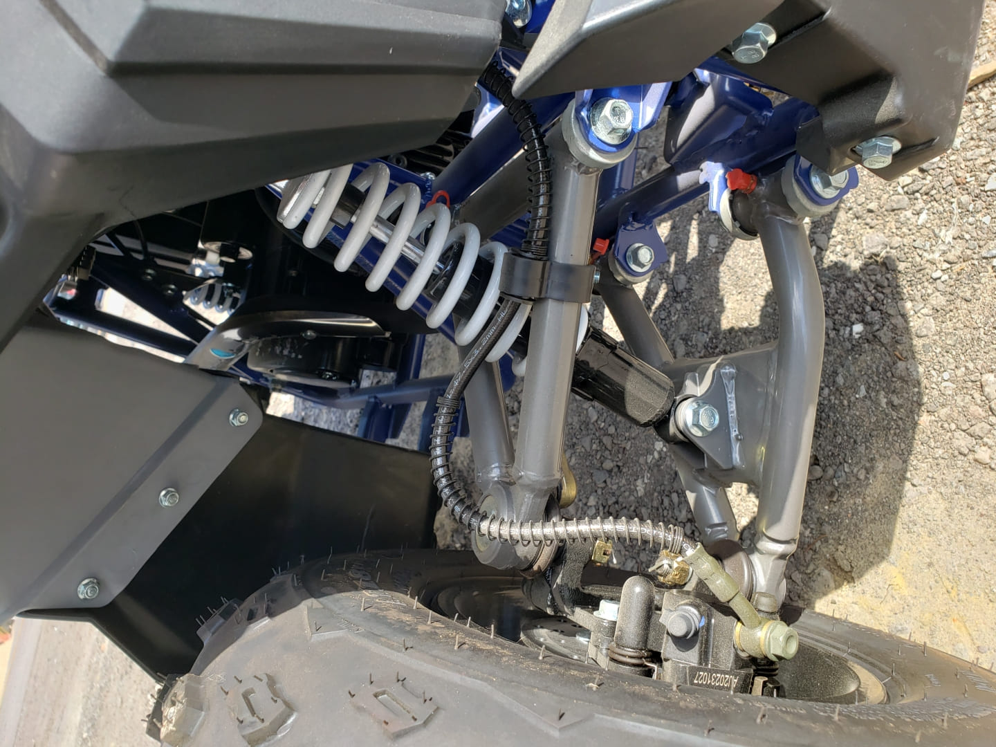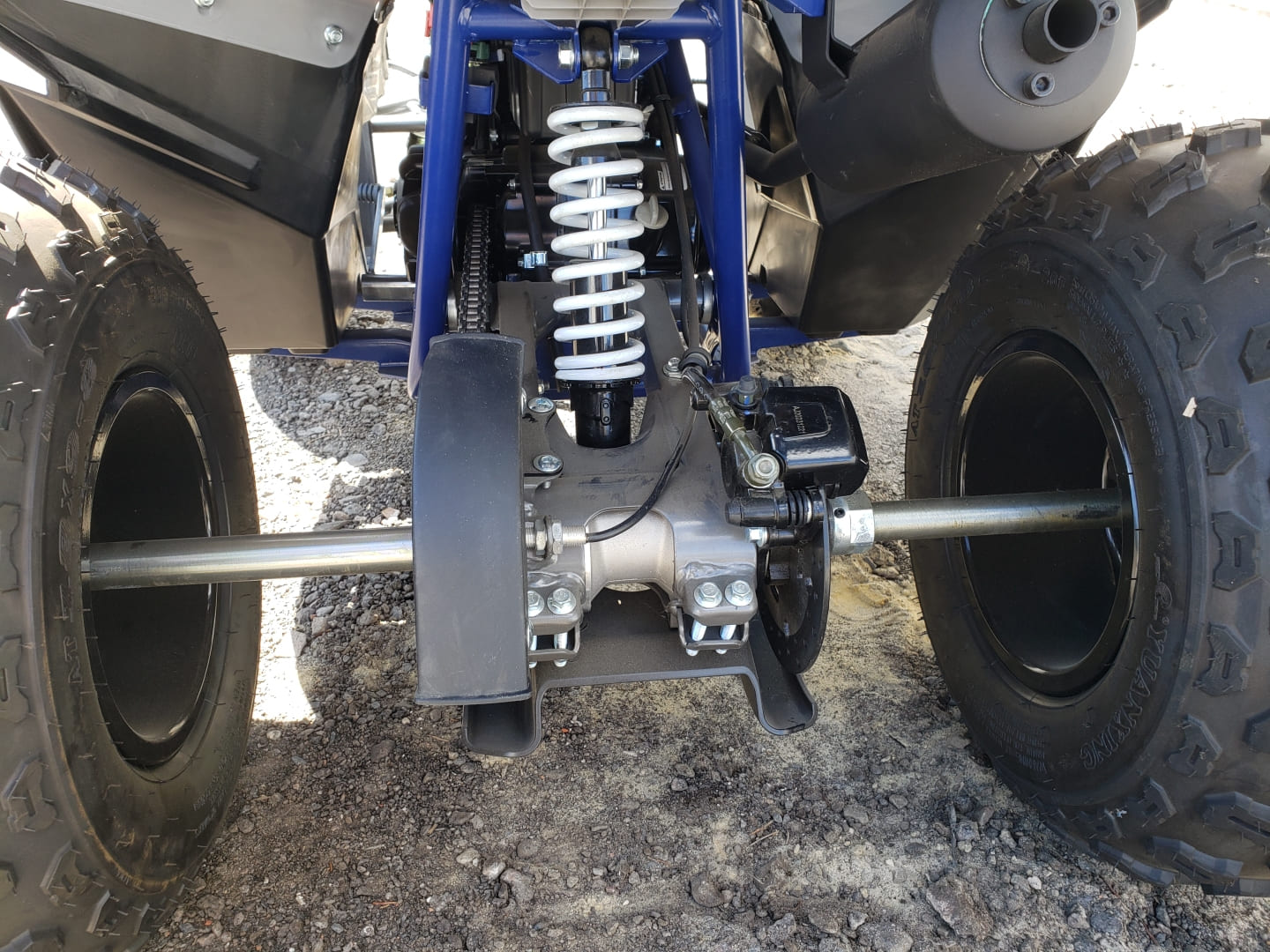 Покрышки изготовлены из смеси искусственного и натурального каучука (как Deestone у Polaris), для улучшенного сцепления с треком и исключает разбортовку при снижении давления в шинах, протектор All Terrain (как у YAMAHA) для комфортной езды в любой местности. Разноширокая колея передних колес и задней оси обеспечивают вам хорошую управляемость и высокую проходимость.
