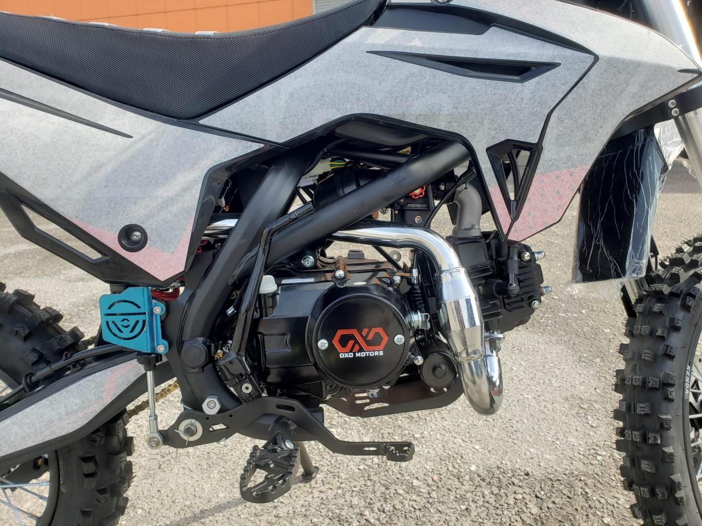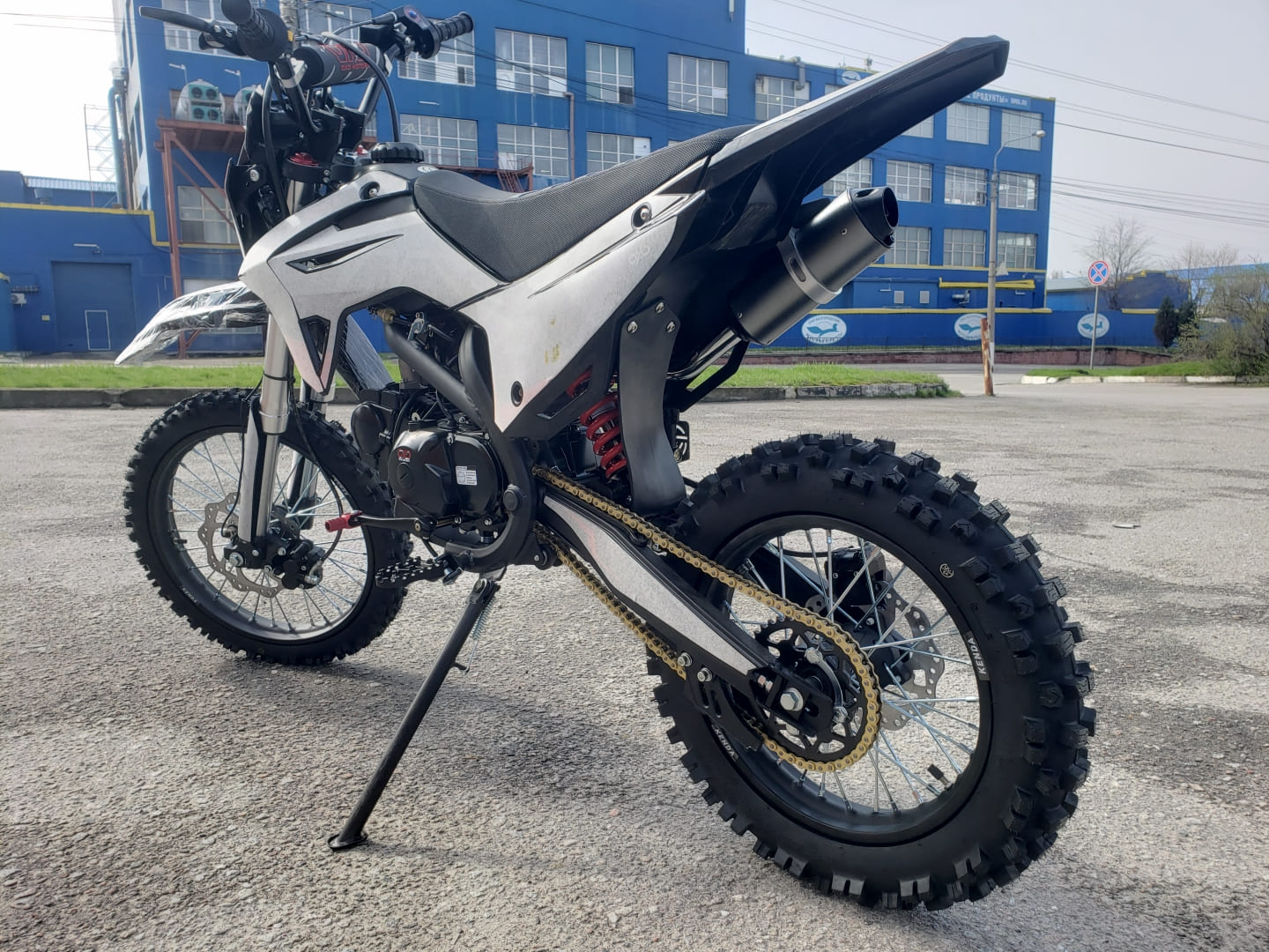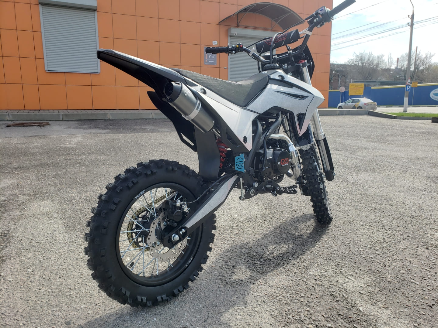 Рама: хроммолибденовая сталь, резина KENDA(70/100-17,90/100-14), бак 4л, воздушно-маслянное охлаждение, маятник стальной, обода стальные, ступица алюминиевая, спицы(3.5/3.5мм), буксатор зад, алюминиевый руль с перекладиной, пульт света КТМ, короткоходная ручка газа, алюминиевая лапка КПП, откидные алюминиевые рычаги, приборная панель, перо 33мм. Зажигание- электрический и кик стартер